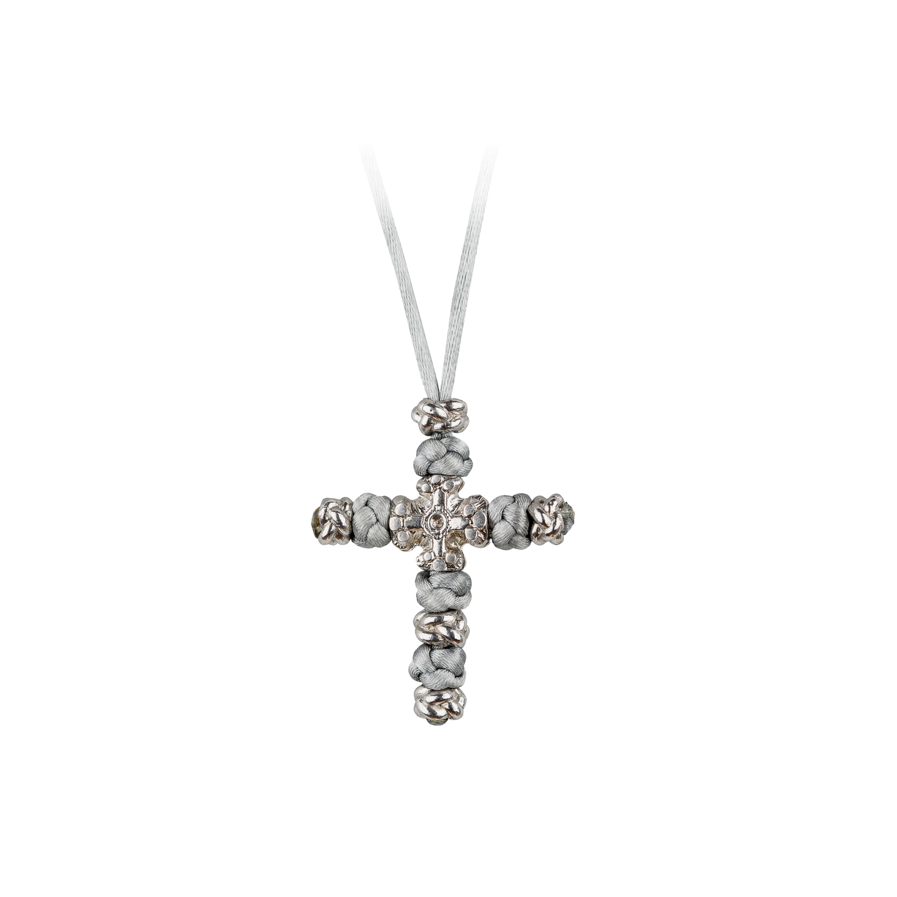 • Armour cross and glossy knots in white gold (22K) plated sterling silver 925