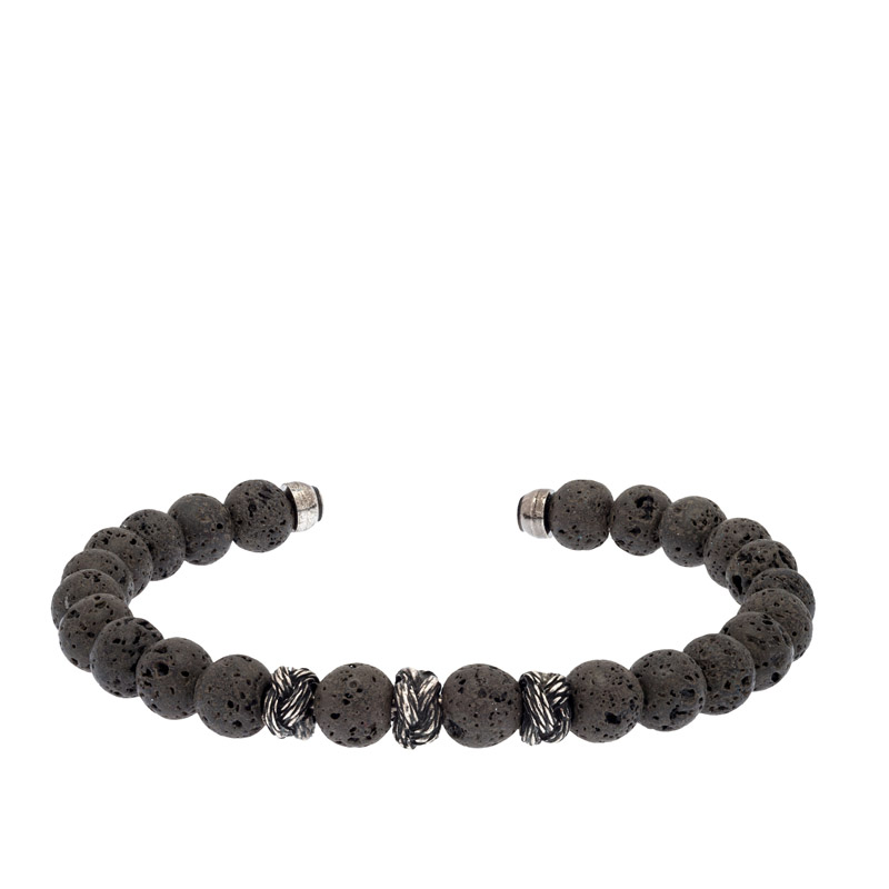 Assembled on a silver wire, this lava bracelet is easy to wear and reflects masculinity and strength. #antique