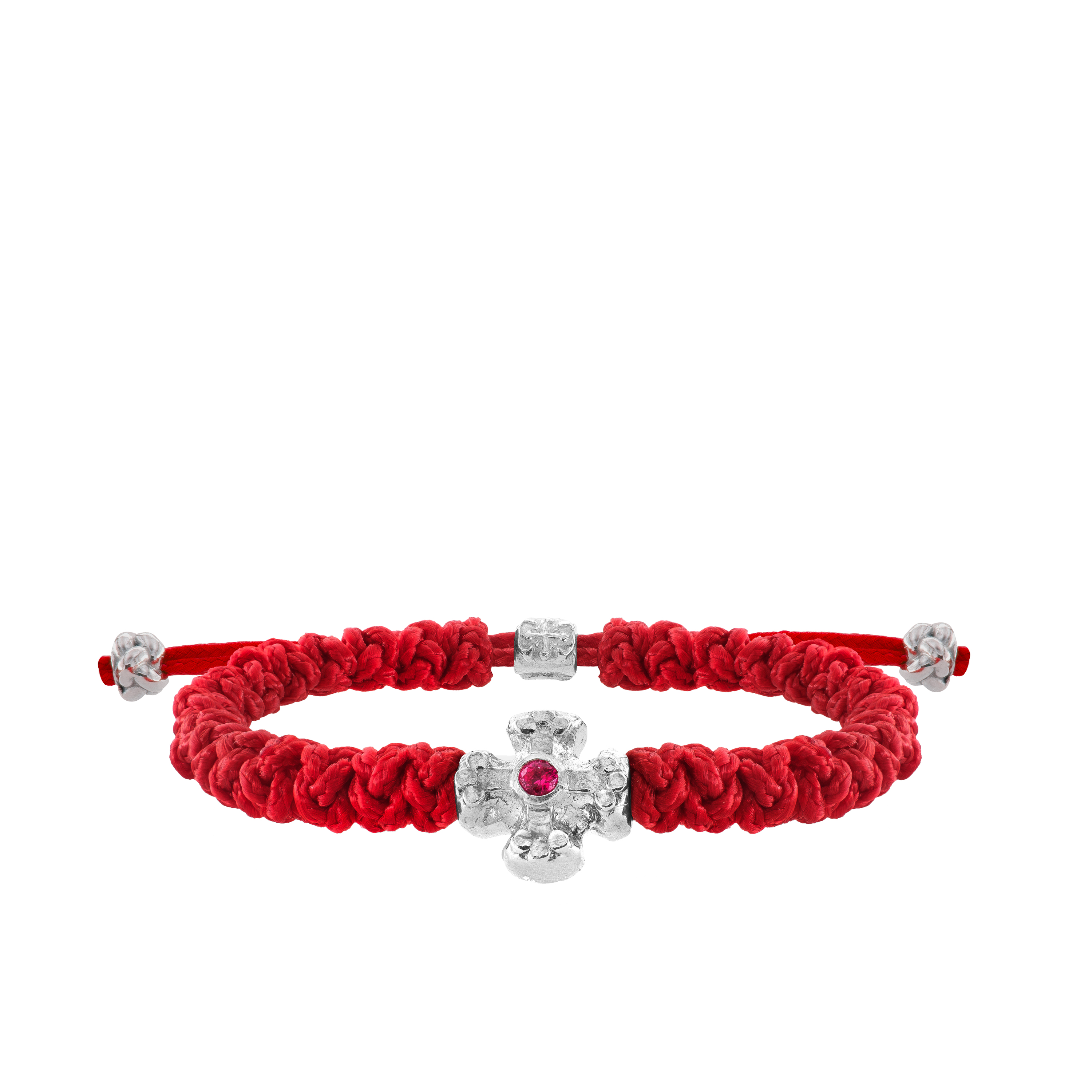 • Armour Petit Cross made from Rhodium with 3mm Shiny Red Stone; 33 hand-knitted knots in Flame Red color made from High Quality Silk; Cross Logo Tunnel Closure System with 2 Glossy knots; Product Pouch with Cross Logo for storage and cleaning; Wooden Box with Cross Logo and Magnet Closure System (optional); Weight – 200g.