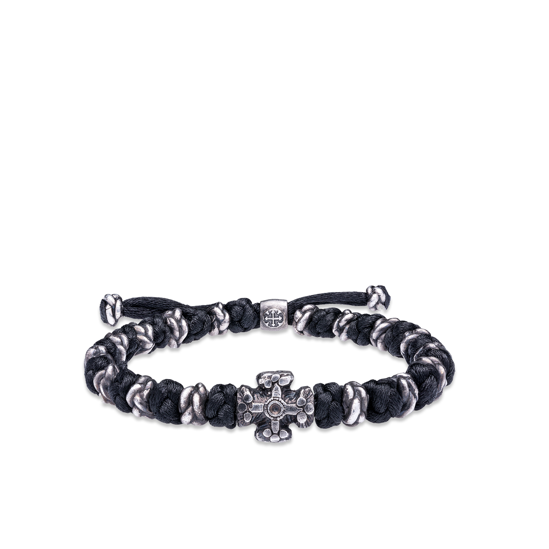 Nautika Bracelet by Be Unique features 33 knots in a combination of 16 Be Unique's patented Glossy knots in Antique finish and 17 hand-knitted knots in Cool Black colour, Armour Medium Cross and Be Unique's Logo Tunnel Closure System. Nautika Bracelet has a look that is both luxe and relaxed. Cross symbol and exactly 33 knots count are subtly referencing traditions of Orthodox Rosary design. This bracelet can be personalised by engraving initials on the Cross symbol. Very comfortable and easy to wear.