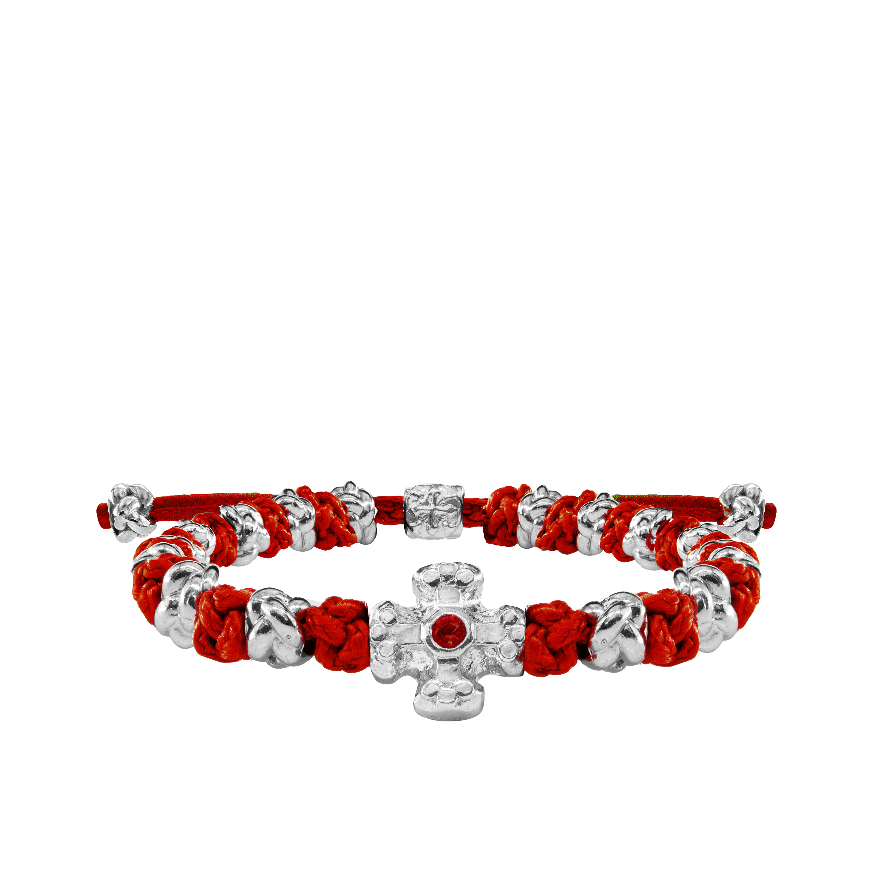 Nautika Mini Bracelet by Be Unique features 33 knots in a combination of 16 patented Be Unique's Glossy knots in White Gold finish and 17 hand-knitted knots in Flame Red colour, Armour Petit Cross with Shiny Red stone and Be Unique's Logo Tunnel Closure System. This sweet little bracelet gives modern allure, while subtly referencing traditions of Orthodox Rosary design. This bracelet can be personalised by engraving initials on the Cross symbol. Very comfortable and easy to wear.