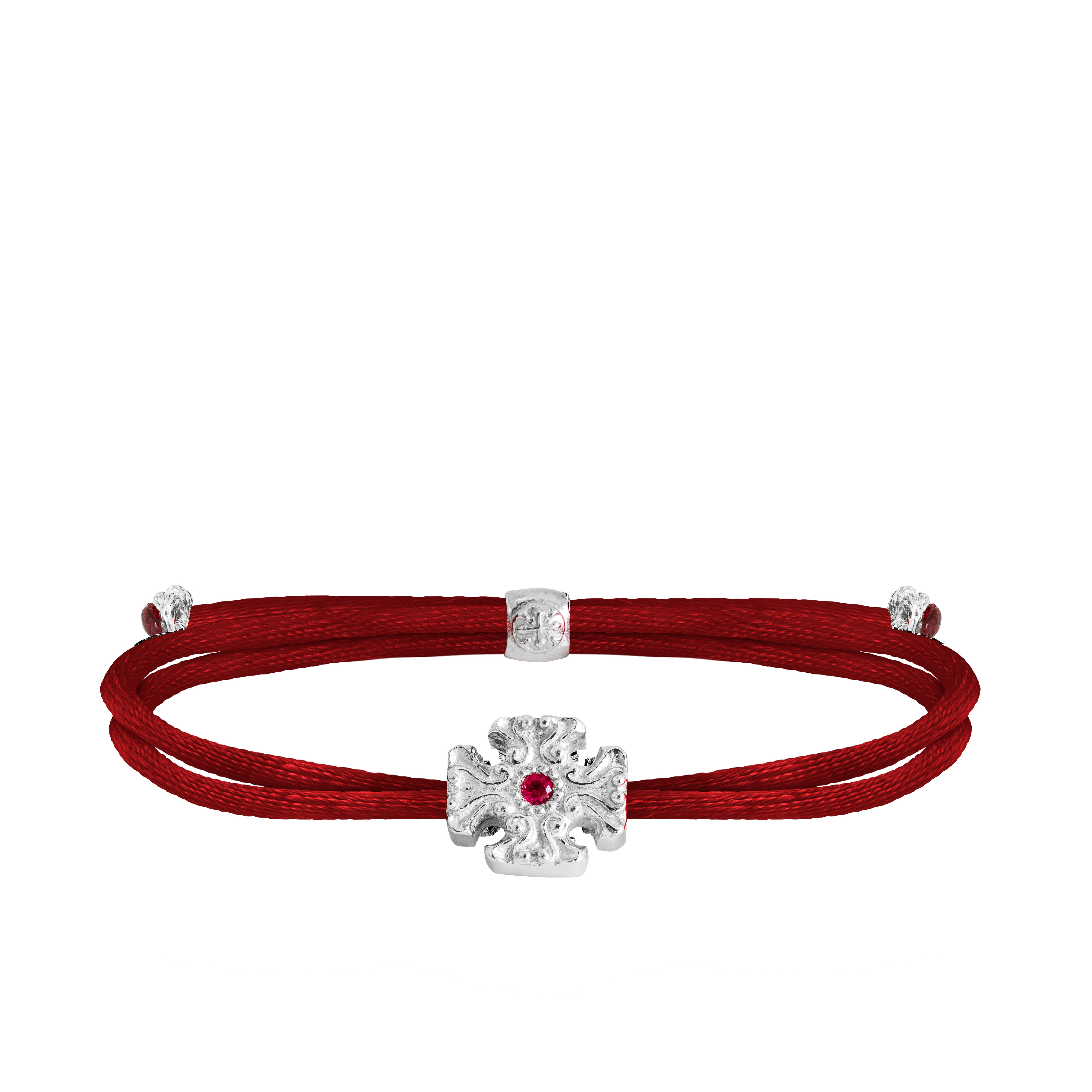 Simple fashion shows the charm. Meet Charm Valentina, one of the Be Unique's most beloved bracelets. This bracelet features Valentina Petit cross in White Gold finish with Shiny Red stone, Be Unique's Logo Tunnel Closure System, two Be Unique's patented Glossy knots and silky soft rope in Flame Red colour. Centrally positioned cross element with heart shaped ends is a hidden love symbol and reference to traditions of Orthodox jewelery design. Skin friendly rope material and non-allergic silver oxidation process ensure it is an ideal piece for everyday and even warm-weather wear. Can be worn solo or stacked with other pieces. This bracelet can be personalised by engraving initials on the Cross symbol. Very comfortable and easy to wear.