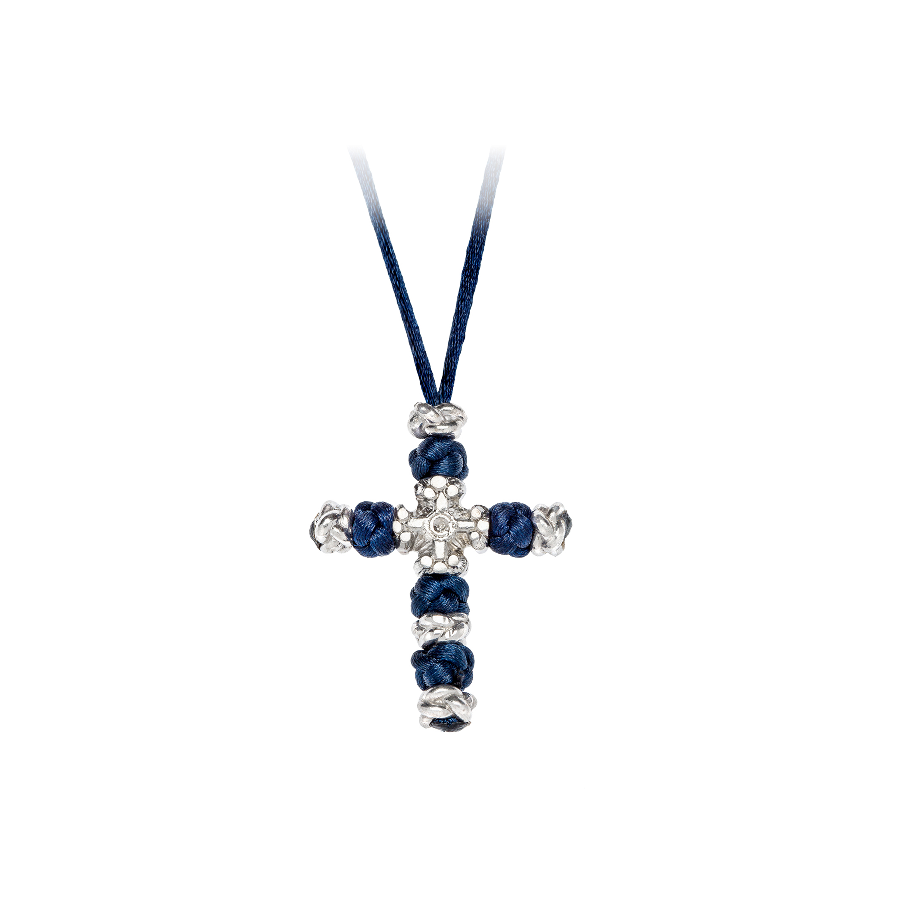 • Armour cross and glossy knots in white gold (22K) plated sterling silver 925