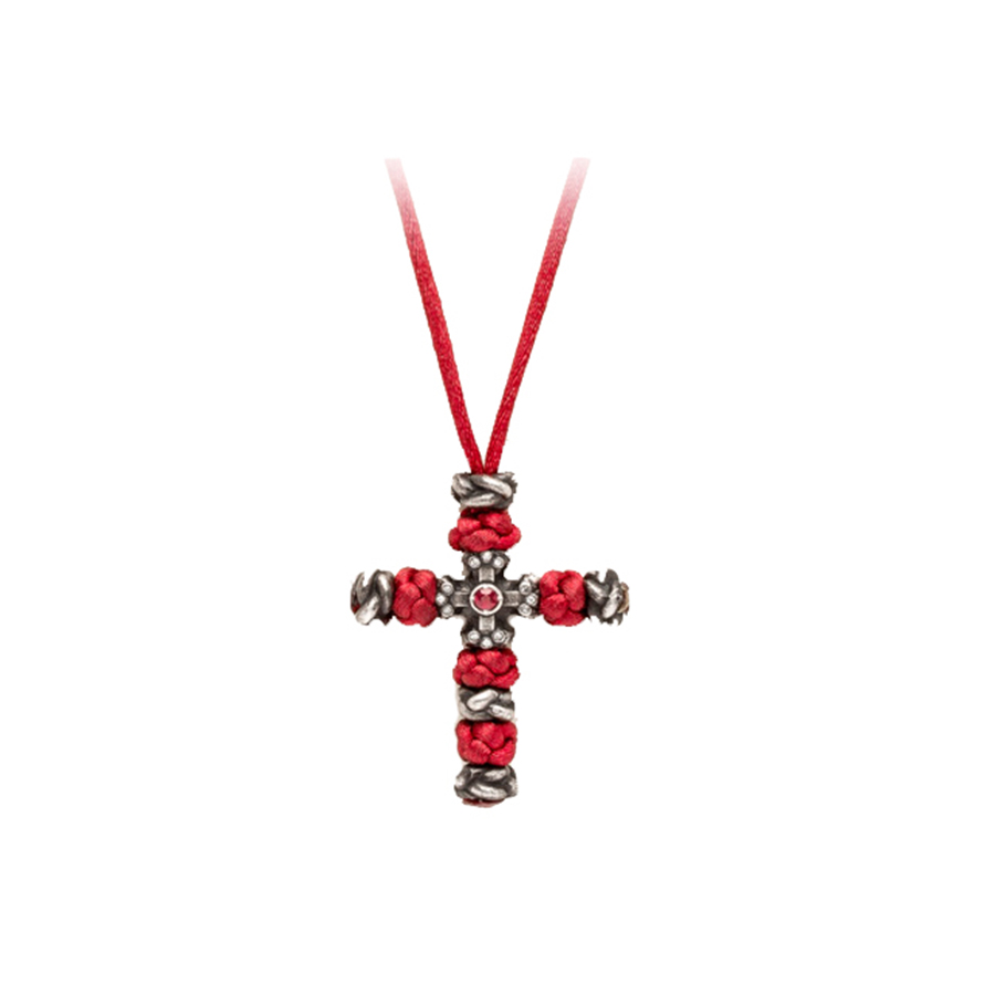 • Armour cross and glossy knots in oxidized sterling silver 925 with antique finish