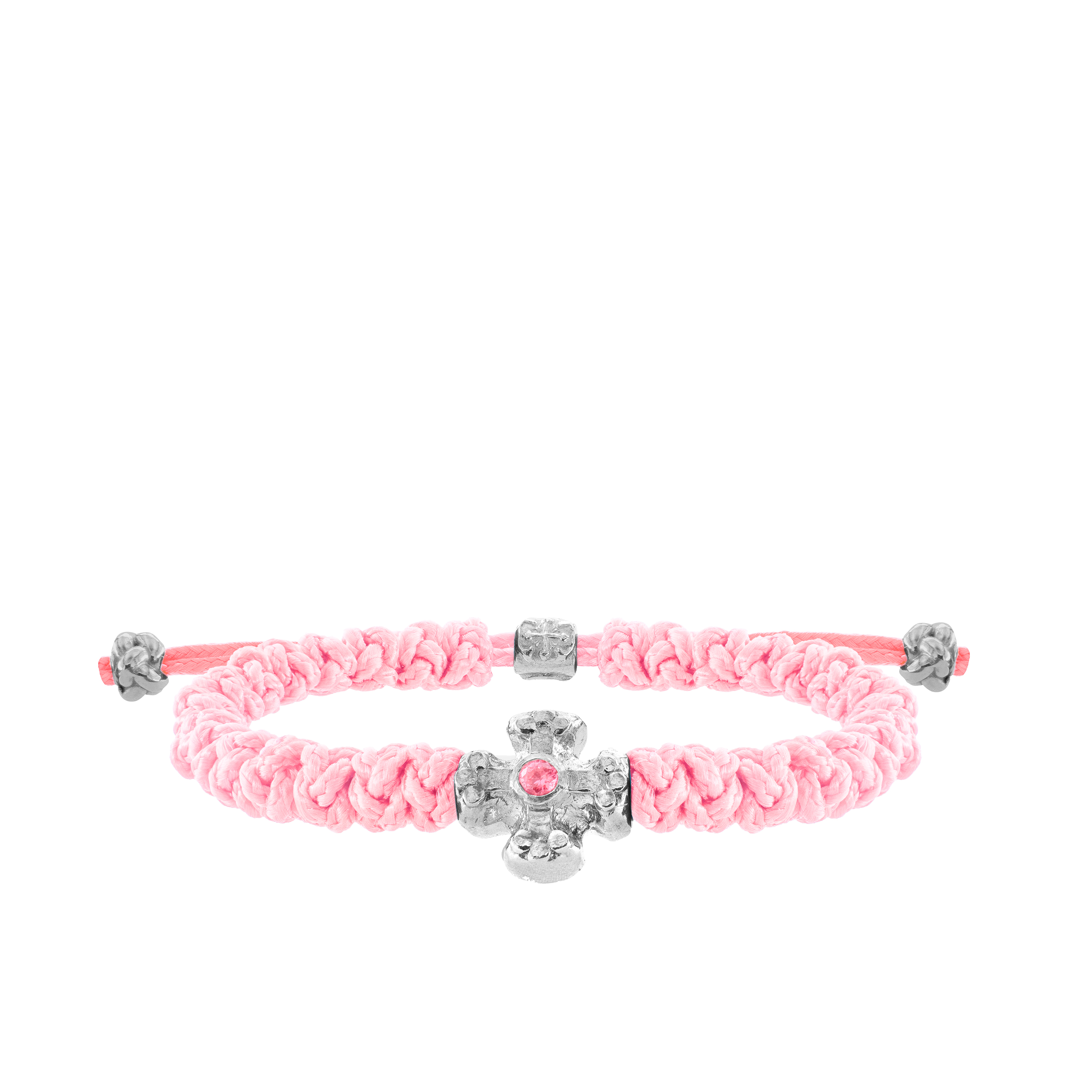 • Armour Petit Cross made from Rhodium with 3mm Shiny Pink Stone; 33 hand-knitted knots in Vivid Pink color made from High Quality Silk; Cross Logo Tunnel Closure System with 2 Glossy knots; Product Pouch with Cross Logo for storage and cleaning; Wooden Box with Cross Logo and Magnet Closure System (optional); Weight – 200g.